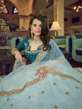 Look like a dream wearing this baby blue color designer lehenga in net. Decorated with sequins and thread embroidered work. Paired with a matching prussian blue color embroidered choli in art silk and blue net dupatta. Note: The accessories featured are purely for fashion purposes. Due to photography reasons, some color variations may occur. The semi-stitched choli and lehenga waist may be customized up to 42 inches.