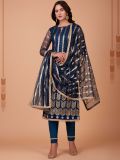 Look stylish adorning this prussian blue color straight cut kameez in net. Designed using sequins and thread embroidery all over. Paired with an embroidered net dupatta and a matching pants in crepe. Note: Accessories shown are for styling purpose only. Slight color variation may occur due to photographic reasons. The semi-stitched kameez can be customised upto 42 inches.