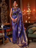 Make a regal statement sporting this royal blue color saree crafted in silk. Augmented with floral themes zari woven patterns all over with distinstive pallu. Teamed with a matching blue color blouse in silk. Note: The accessories featured are purely for fashion purposes. Due to photography reasons, some color variations may occur. The un-stitched blouse may be customized up to 42 inches.