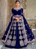 Add sparkel to everything this royal blue color anarkali kameez in velvet. Designed using zari and thread work embroidery with stones all over. Paired with a matching net dupatta and a matching bottom in net. Note: Accessories shown are for styling purpose only. Slight color variation may occur due to photographic reasons. The semi-stitched kameez can be customised upto 42 inches.
