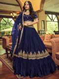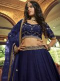 Mark your appearance wearing this royal blue color designer lehenga in satin. Decorated with sequins and thread embroidered work. Available with a matching blue color embroidered art silk choli and dupatta in net. Note: The accessories featured are purely for fashion purposes. Due to photography reasons, some color variations may occur. The semi-stitched choli and lehenga waist may be customized up to 42 inches.