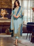 Look gorgeous wearing this sky blue color straight cut kameez in georgette. Augmented using zari embroidery with stones embellishments all over. Teamed with a matching chiffon dupatta and a matching pant in shantoon. Note: Accessories shown are for styling purpose only. Slight color variation may occur due to photographic reasons. The semi-stitched kameez can be customised upto 42 inches.