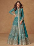 Be the best dressed diva adorning this blue color bridesmaid lehenga made in real georgette. Decorated with sequins and heavy zari embroidered work all over. Paired with a matching blue color full sleeved front slit cut flare style long embroidered kameez and a blue color dupatta, both made in georgette. Note: The accessories featured are purely for fashion purposes. Due to photography reasons, some color variations may occur. The semi-stitched choli and lehenga waist may be customized up to 42 inches.