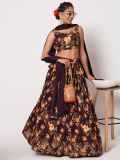 Exude major dreamy vibes wearing this dark brown color lehenga in art silk. Furnished using floral prints all over with sequins and thread embroidered work. Paired with a matching brown color embroidered art silk choli and brown dupatta made in art silk. Note: The accessories featured are purely for fashion purposes. Due to photography reasons, some color variations may occur. The semi-stitched choli and lehenga waist may be customized up to 42 inches.