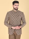 Creating a striking visual effect adorning this brown color jodhpuri suit designed in velvet fabric. Crafted with heavy floral thread work embellishment all over. Paired with a matching brown color pant made in cotton. Note: Some color variations may occur owing to photography causes. Up to 1 inch of measurement fluctuation is possible.