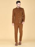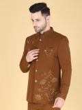 Bedazzle everyone around you wearing this brown color jodhpuri suit made in polyster cotoon fabric. Furnished hand work embellishment with floral work embroidery all over. Available with a matching brown color embroidered jacket and a brown color pant, both made in cotton. Note: Some color variations may occur owing to photography causes. Up to 1 inch of measurement fluctuation is possible.