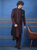 An charmingly styled Wine Colour Imported Fabric Men's Indo Western which is ideally suited for all ethnic moments.