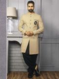 An Superb Cream Colour Imported Fabric Men`S Indowestern Will Make You Look Very Stylish And Graceful.