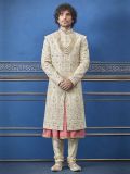 Be The Sunshine Of Everybody Eyes Dressed In This Pretty Cream Colour Silk Fabric Men's Sherwani With Thread,Zari,Zardozi Work.