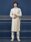Get an ethnic look sporting this Cream Colour Silk Fabric Wedding Sherwani With Thread,Zari,Zardozi Work.