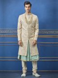 This Cream Colour Silk Fabric Men`S Indian Sherwani Is Adding The Appealing Glamorous Showing The Sense Of Cute And Graceful.