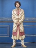 Make An Adorable Statement In Such A Smashy Cream Colour Silk Fabric Indian Designer Sherwani With Thread,Zari,Zardozi Work.