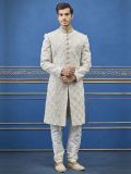 Magnificent Look Cream Colour Silk Fabric Men's Designer Sherwani With Thread,Zari,Zardozi Work.