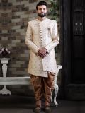 Look dashing and admirable in this Cream Colour Silk Fabric Men's Indo Western With Thread,Zari,Zardozi Work.