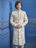 Make An Adorable Statement In Such A Smashy Cream Colour Silk Fabric Men's Sherwani With Thread,Zari,Zardozi Work.
