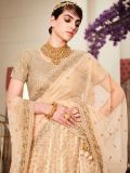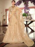 Get all dolled up wearing this cream color designer lehenga in net. Decorated with thread, sequins embroidery with stone work all over. Assembled with a matching cream color choli in net and a cream bordered net dupatta, both embellished in similar work. Note: The accessories featured are purely for fashion purposes. Due to photography reasons, some color variations may occur. The semi-stitched choli and lehenga waist may be customized up to 42 inches.