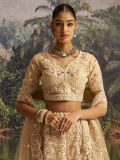 Wrap yourself in culture wearing this ivory cream color bridesmaid lehenga in soft net. Decorated with sequins work and stone work embellishment with heavy floral thread embroidery all over. Available with a matching cream color embroidered choli and a cream color dupatta, both made in soft net. Note: The accessories featured are purely for fashion purposes. Due to photography reasons, some color variations may occur. The semi-stitched choli and lehenga waist may be customized up to 42 inches.