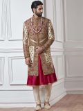 Exclusive Cream,Golden Silk Sherwani With Matching Anarkali Kurta With Churidar Pajama And Zardozi,Embroidery Work.