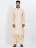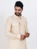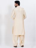 Dazzle the audience as you wear this cream color readymade kurta designed in viscose fabric. Enhanced with coller pattern and patch pockets. Available with a cream color pathani salwar in viscose fabric. Note: Some color variations may occur owing to photography causes. Up to 1 inch of measurement fluctuation is possible.