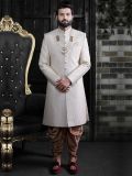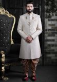 Make a classy impression, dressed in this Cream,Off White Colour Jacquard Fabric Men's Designer Sherwani Zari Work.