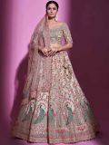 Bring out the charm wearing this cream lehenga in net. Augmented with peacock themed sequins, zari and thread embroidered work. Comes with a matching cream color choli in net and a cream embroidered net dupatta. Note: the accessories featured are purely for fashion purposes. Due to photography reasons, some color variations may occur. The semi-stitched choli and lehenga waist may be customized up to 42 inches.
