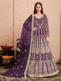 Reflect your glamour personality wearing with this eggplant purple color anarkali style kameez in net. Augmented using sequins and thread work embroidery all over. Assigned with a net dupatta in zari embroidery and a pant style bottom made in shantoon. Note: Accessories shown are for styling purpose only. Slight color variation may occur due to photographic reasons. The semi-stitched kameez can be customised upto 42 inches.