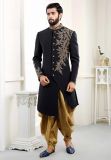 Blue readymade indo western sherwani in velvet designed with Different cut embellished with zari & thread work.Suitable for Weddings, Bollywood parties and Indian ceremonies & occassions.Perfect for Groom or Groomsmen