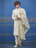 Exclusive Cream Colour Silk Fabric Groom Sherwani With Thread,Zari,Zardozi Work.