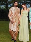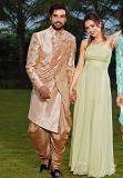 Attractive Looking Golden Colour Silk Fabric Men's Indowestern With Matching Patiala Pajama.