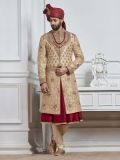 Get a desirable dynamism with this Golden,Maroon Color Silk Sherwani With Matching Anarkali Kurta With Churidar Pajama is embellished with Embroidery,Zardozi,Zari Work