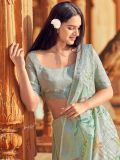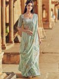 Walk in style adorning this light green color saree crafted in linen. Augmented using floral printed patterns. Paired with a matching green color blouse in linen. Note: The accessories featured are purely for fashion purposes. Due to photography reasons, some color variations may occur. The un-stitched blouse may be customized up to 42 inches.