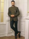 Elegant Looking Green Colour Imported Fabric Designer Wedding Suit With Printed Work.