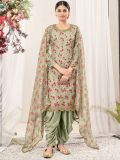 Allure the crowd sporting this asparagus green color straight cut kameez in net. Augmented using zari and thread work embroidery with sequins work all over. Comes with a matching organza dupatta with floral prints and a matching salwar in shantoon. Note: Accessories shown are for styling purpose only. Slight color variation may occur due to photographic reasons. The semi-stitched kameez can be customised upto 42 inches.