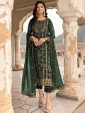 Walk the glam wearing this sage green color straight cut kameez in georgette. Elevated using zari work embroidery with sequins all over. Teamed with a matching net dupatta and a matching pants in shantoon. Note: Accessories shown are for styling purpose only. Slight color variation may occur due to photographic reasons. The semi-stitched kameez can be customised upto 42 inches.