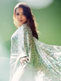 Exude major regal vibes adorning this green color saree crafted in georgette. Designed using thread work with heavy sequins embellishment, showcasing distinstive lace borders. Comes with a matching green color blouse in satin. Note: The accessories featured are purely for fashion purposes. Due to photography reasons, some color variations may occur. The un-stitched blouse may be customized up to 42 inches.