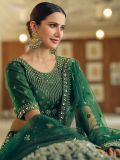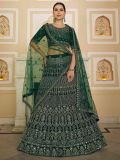 Elevate your ethnic look wearing this bottle green designer lehenga in net. Augmented with intricate mirror work, stones and dori embroidered work. Paired with a matching green color choli and a green embroidered dupatta, both crafted in net. Please Note: The accessories featured are purely for fashion purposes. Due to photography reasons, some color variations may occur. The semi-stitched choli and lehenga waist may be customized up to 42 inches.