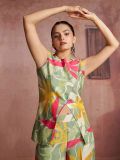 Give a glamorous glance wearing this green color half sleeved top made in pure muslin silk. Augmented with floral printed pattern all over. Available with matching green color pant made in muslin silk. Note: Some color variations may occur owing to photography causes. Up to 1 inch of measurement fluctuation is possible.