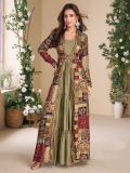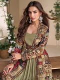 Show your feminine side to the world wearing this green color ruffle style gown crafted in georgette. Augmented with sequins, stone and floral thread work enhanced or mirror work embellishment with floral printed pattern all over. Paired with a multicolor full sleeved embroidered shrug made in georgette. Note: Some color variations may occur owing to photography causes. Up to 1 inch of measurement fluctuation is possible.