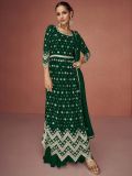 Glam up sweetly wearing this green color gathered kameez in georgette. Decked with sequins and thread work embroidery all over. Teamed with a matching dupatta and a matching palazzo in georgette. Note: Accessories shown are for styling purpose only. Slight color variation may occur due to photographic reasons. The semi-stitched kameez can be customised upto 42 inches.