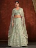 Capture hearts with your elegance adorning this green color bridesmaid lehenga designed in heavy net. Decorated with sequins and zari embellishment with heavy floral thread work embroidery all over. Paired with a matching green color embroidered choli and a green color dupatta, both made in net. Note: The accessories featured are purely for fashion purposes. Due to photography reasons, some color variations may occur. The semi-stitched choli and lehenga waist may be customized up to 42 inches.