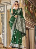 Grab all the attention wearing this deep green color saree crafted in art silk. Designed using zari woven patterns, showcasing distinstive borders and pallu. Paired with a matching green color blouse in art silk. Note: The accessories featured are purely for fashion purposes. Due to photography reasons, some color variations may occur. The un-stitched blouse may be customized up to 42 inches.