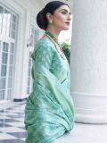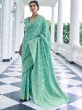 Look no less than a dream shine wearing this sea green color party wear saree crafted in silk. Augmented using traditional themed chikankari patterns, showcasing distinstive borders and pallu. Comes with a matching sea green color blouse in silk. Please keep in mind that the accessories featured are purely for fashion purposes. Due to photography reasons, some color variations may occur. The un-stitched blouse may be customized up to 42 inches.