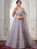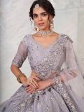 Make a swoonworthy statement wearing this lush grey color flared lehenga in art silk. Decorated with sequins and thread embroidery and stones work all over. Paired with a matching grey color embroidered art silk choli and grey dupatta made in net. Note: The accessories featured are purely for fashion purposes. Due to photography reasons, some color variations may occur. The semi-stitched choli and lehenga waist may be customized up to 42 inches.