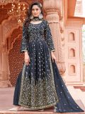 Allure the crowd adorning this slate grey color gathered kameez in georgette. Augmented using stones and thread work embroidery all over. Assembled with a grey embroidered dupatta and a matching sharara in georgette. Note: Accessories shown are for styling purpose only. Slight color variation may occur due to photographic reasons. The semi-stitched kameez can be customised upto 42 inches.