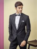 Auspicious Black Colour Imported Fabric Tuxedo Suit.