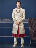 Be Your Unique Trend Diva With This Cream Colour Silk Fabric Men's Designer Sherwani.
