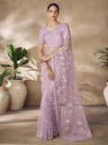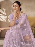 Wrap yourself in culture wearing this lilac color saree crafted in net. Decorated using sequins and floral thread work embroidered patterns all over. Comes with a matching lilac color blouse in net. Note: The accessories featured are purely for fashion purposes. Due to photography reasons, some color variations may occur. The un-stitched blouse may be customized up to 42 inches.
