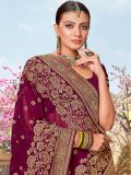 Shine brighter wearing this light this jam purple color saree designed in georgette. Decorated using zari woven patterns, displaying unique borders and pallu. Teamed with a matching purple color zari woven blouse in georgette. Note: The accessories featured are purely for fashion purposes. Due to photography reasons, some color variations may occur. The un-stitched blouse may be customized up to 42 inches.