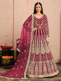 Capture the essence of femininity in this maroon color anarkali style kameez in net. Enhanced using sequins and thread work embroidery all over. Assigned with a net dupatta in zari embroidery and a pant style bottom made in shantoon. Note: Accessories shown are for styling purpose only. Slight color variation may occur due to photographic reasons. The semi-stitched kameez can be customised upto 42 inches.
