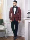 Fabulous Maroon Color Imported Fabric Designer Men's Suit.